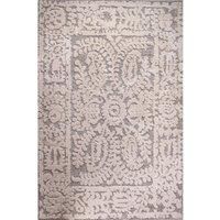 Grey Cream Floral Damask Loop and Tufted Shaggy Rug