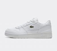 Lacoste T-Clip 121 Trainers in White. Serving up a smasher from the archives comes Lacoste and this squeaky clean tennis-influenced silhouette. With a smooth faux leather upper, soft textile lining and grippy rubber sole. Secure lace fastening, cushioned ankle collar, perforated side detail, contrasting heel tabs, and iconic Lacoste Croc logo. More balls please! White Size - 8 - Manufacturers part number: WUS97