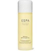 ESPA Restful Bath & Body Oil "Our Signature Blends Bath & Body Oils harness the power of aromatherapy to elevate each moment with sensorial connection. Fragrance blends composed from pure essential oils that complement your moods and indulge the skin. The Restful Blend harnesses the soporific grace of Lavender, Clary Sage and Eucalyptus for blissful bedtime and a heavenly night's sleep. Our formula features a rich melange of Avocado, Sweet Almond, and Soybean Oils to support skin's natural moisture b...