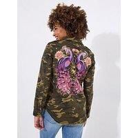 Joe Browns Boutique Embrace Joy Jacket - Khaki Equal parts edgy and uplifting, this embroidered camo jacket will always make a statement. Material Content: Main: 100% Cotton. Body Lining: 50% Cotton, 50% Polyester Washing Instructions: Machine Washable - Manufacturers part number: WJ717A