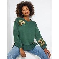 Joe Browns Tilly Embroidered Woven Hem Sweatshirt - Green Full of fun details, this relaxed-fit embroidered sweatshirt is for staying snug in style. Material Content: Body: 100% Cotton. Trim: 100% Cotton. Washing Instructions: Machine Washable