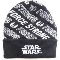 Fabric: Acrylic Wool. Design: Logo, Repeat Print, Text. Turned Up Cuff. 100% Officially Licensed. | Star Wars Men Force Repeat Print Beanie in Black