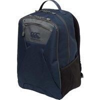 - Material: Polyester. -Fabric: PVC Coated. -Design: Logo. -Handle Features: Grab Handle. -Fastening: Zip. -Adjustable Shoulder Strap, Padded Back Panel, Padded Compartment, Padded Straps, Zip Pullers. -Compartments: 2 Main Compartments, Laptop. -Pockets: Front Zip, Internal Media Port, 2 Mesh Pockets. -Capacity: 28L. -This product is of good quality and is very comfortable to wear - Manufacturers part number: Canterbury_UTPC4662_navy_MP-7813