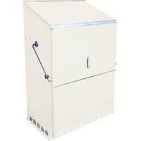 Designed to hold 2 x 47kg cylinders and manufactured to strict safety standards. Offers a modern, safe and secure storage solution for butane or propane gas. Features bottle guides in flooring and integral metal base, designed to be bolted down to a hard surface. PVC-Coated Galvanised Steel Construction Hinged Lift-Up Lid with Padlock Eye Rustproof & Fire-Resistant Fully Ventilated 25 Year Manufacturer's Guarantee (T&Cs Apply) External Warning Label - Manufacturers part number: 659RY