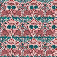 A feeling of celebration in this mad-packed design comprising cheetah-patterned elephants; gazelles leaping at sunset; humming birds carrying tiny pyramids; exotic insects, planets and snakes; did I mention the flowering metal chains£ The scene shown here in rose pinks and deep reds with tealy greens to blues, set against an icing pink background. Other colourways are available. - Manufacturers part number: Emma J Shipley_W0121/05