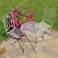 ROCHELLE Bistro Set - This elegant folding set with decorative scrolling is made from powder coated steel with a slightly distressed look, as the set weathers this will increase giving the appearance of vintage furniture. Once folded the table and chairs can easily be moved to different locations - perhaps chasing the sun. Can be used either outside. Manufactured in steel, this set simply requires unfolding for use, no assembly required. Features and Benefits ROCHELLE Chair (H)95, (W)38.5, (D)53 - Table...