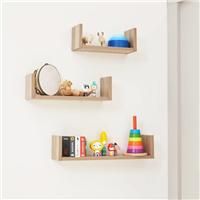 Designed to complement our Modena furniture ranges in Oak or White/Oak, this set of U-shaped wall shelves is stylish and practical, offering plenty of space for displaying photos and ornaments, or to store your child£s treasured keepsakes. The set includes three different size floating shelves and the wall fixtures needed for installation. Features: Made from Engineered Wood Easy to assemble Affordable price Compliant with British Standards for Safety and Performance Longer term durability Stylish & sle... - Manufacturers part number: 30884544