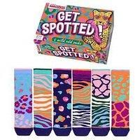 Fulton United Oddsocks - Get Spotted Unleash your wild side with Get Spotted! - 6 wild and fierce animal print Oddsocks that make a statement. Perfect for the bold, these socks bring a playful twist to your wardrobe. Whether you're lounging like a leopard, heading out, or showing off your unique style, these socks will have you feeling unstoppable. Why blend in when you were born to stand out Get spotted and let your feet roar with confidence! Washing Instructions: Machine Washable - Manufacturers part number: SPOTTY