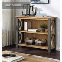 Urban Elegance Low Reclaimed Wood and Steel Bookcase, stylish Features: Steel Outer Frame Resilient Satin Lacquer This unit has two fixed shelves, and the additional open top shelf Environmentally friendly, using reclaimed timber Each shelf has H31 x W87 x D18 cm clear space to display your items 5 Year Guarantee No Assembly Required Specifications: Dimensions: H:80.0 x W:31.0 x D:100.0 cm Colour: Brown Guarantee:5 years Material: Wood & Metal Model Number: VPR01F Self Assembly Required: Yes