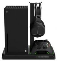 Release date: 16 December 2023. Show your console off in style with the DLX Multi-Function Stand for your Xbox Series X or Series S Complimentary styling perfectly matches your console and keeps your essential accessories ready to go. Drop and Charge functionality for 2 Xbox X/S/One controllers, including 2 x 1400mAh battery packs to ensure you are powered-up and always ready for action, with LED lighting showing charge status. The additional cooling fan helps dissipate heat away from your console durin...