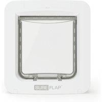 The SureFlap Microchip Pet Door from Sure Petcare is a pet door which is suitable for larger cat breeds and small dogs. It has a built-in sensor which saves and reads your pet's existing microchip. Once saved, the SureFlap Pet Door will open only for your pet and prevents other animals from entering your home. Alternatively, it can be used with a SureFlap RFID collar tag, one of which is supplied with the product. The special double lock mechanism provides increased security against other animals. It immediately locks the pet door when it recognises an intruder trying to get in, and there is also a double lock on the inside of the house which stops pets from exiting when they are not allowed to. A further highlight is the Curfew Mode Progra... - Manufacturers part numbers: 185922|SureFlap_