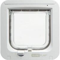 Use your cats existing microchip as an electronic door key and keep intruder animals out. Consisting of a white internal frame and an grey exterior frame and tunnel, the microchip cat flap will ideally complement doors that have a grey exterior and a white internal finish. Battery powered (4xAA not included), works with all microchips, stores up to 32 cats and no collar is required. Drop-in replacement for most cat flaps. Mounting adaptor required for glass installations. Flap size (mm) 142 w x 120 h. S... - Manufacturers part numbers: SUR001GYWT|SureFlap_