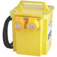 Carroll & Meynell Yellow 750VA Site transformer.Complete with 2 socket this transformer has a 110V power output. For your safety it has thermal overload protection. - Manufacturers part number: CM3000200PT
