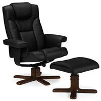 The Malmo reclining swivel chair and stool are upholstered in a soft touch faux leather with a walnut colour laminated base. This chair offers the ultimate in complete sitting comfort and relaxation. Features and Benefits Durable - Steel frame for sturdy construction and longevity. Comfortable - Deeply cushioned high-grade foam and upholstered in soft touch faux leather. Impressive - imposing and grand, this chair is bound to impress with its sumptuous sit and feel. Specifications High-grade foam Soft ...