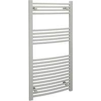Curved white towel radiator in a classic design suitable for use with central heating systems