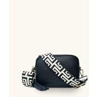 Black Leather Crossbody Bag With Black & Stone Maze Strap