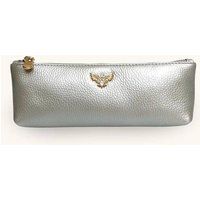 Made from grained pebble leather with gold hardware; this case is perfect for your beauty essentials, sunglasses or stationary. Small enough to fit in your handbag or suitcase, this case makes a lovely gift for you or someone special. Unzips to reveal a fully lined interior. This luxurious case is delivered in a branded dust bag. | Apatchy London Women's Oyster Leather Case in Silver - Manufacturers part number: Apatchy London_5060236261090