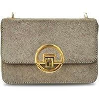 The Tilly Bag in hair on leather captures the essence of timeless craftsmanship with a clean, structured silhouette and a nod to classic British design. Effortlessly elegant, it features a sleek front flap secured by a statement gold clasp, while the smooth leather strap adds a polished finish. Compact yet practical, it comfortably holds your daily essentials - think purse, phone, keys, and cosmetics and includes an internal zipped pocket for added organisation. Presented in a branded dust bag for safekeeping. | Apatchy London Women's The Tilly Hair-On Leather Bag in Nude