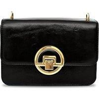 The Tilly Bag in crinkle patent captures the essence of timeless craftsmanship with a clean, structured silhouette and a nod to classic British design. Effortlessly elegant, it features a sleek front flap secured by a statement gold clasp, while the smooth leather strap adds a polished finish. Compact yet practical, it comfortably holds your daily essentials - think purse, phone, keys, and cosmetics and includes an internal zipped pocket for added organisation. Presented in a branded dust bag for safekeeping. | Apatchy London Women's The Tilly Crinkle Pattern Leather Bag in Black