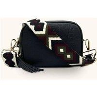 Elevate your look with Apatchy London's Black Leather Crossbody Bag, and add a touch of sophistication and elegance to your outfit with the port olive diamond strap. | Apatchy London Women's Black Leather Crossbody Bag With Port & Olive Diamond Strap
