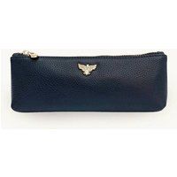 Made from grained pebble leather with gold hardware; this case is perfect for your beauty essentials, sunglasses or stationary. Small enough to fit in your handbag or suitcase, this case makes a lovely gift for you or someone special. Unzips to reveal a fully lined interior. This luxurious case is delivered in a branded dust bag. | Apatchy London Women's Navy Leather Case - Manufacturers part number: Apatchy London_5060236269096