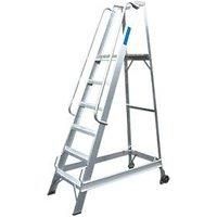 Permanently braced open and with rear wheels for easy manoeuvring. Large alloy chequer plate platform. Handrails to both sides. Strong yet lightweight solution for high shelf access in any storeroom or warehouse. Overall Height: 2.06m - Platform Height: 1.46m Max. Static Vertical Load: 150kg Professional Use Non-Slip Rubber Feet 2 Rear Wheels Backrail Support & 2 x Handrails Included 1 Year Guarantee Deep Treads with Non-Slip Surface - Manufacturers part number: WS6