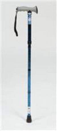 This attractive blue fold-up walking stick features a comfortable gel handle and disassembles neatly into 4 convenient parts for easy storage. The handle height adjusts in 2.5cm (1-inch) increments from 84 - 94cm (33-37-inches). A hard wearing, non-slip ferrule provides stability on various surfaces: also included is a plastic holster-style carry case. Designed for users of no more than 21st. /135kg. Max user weight 135kg (21st). Adjustable height from 84cm - 94cm. Weighs 0.56kg. Push-button adjustment....