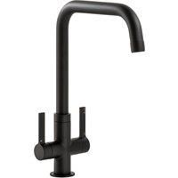 Kitchen Mono Mixer Tap Dual Lever Matt Black Brass Ceramic Disc Control 5.5 Bar