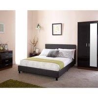 Our contemporary bed frame comes in a number of sizes, colours and fabric options. Finished in a rich faux leather, this range will appeal to all. Sprung slats come as a standard and best of all, this bed comes ALL IN ONE BOX! Features and Benefits Finished in a Rich Faux Leather - Will easily suit any contemporary home. Best of all, This Bed Comes ALL IN ONE BOX! - Built for no hassle easy assembly. Available in a Variety of Colours - Will fit easily into any colour story. Specifications Dimensions&c... - Manufacturers part number: FLB135BLK