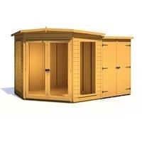 The Barclay is a magnificent corner summer house with a useful shed attached. This garden building will really utilise a corner of your garden giving you a relaxing space as well as handy storage. The summerhouse has full height, styrene safety glazed windows and doors to let in lots of natural light. Wall panels are made from 12mm shiplap boards and supplied in a honey brown timber basecoat ready for you to topcoat after assembly, this could be wood paint or stain. All framing is sturdy 34mm square and... - Manufacturers part number: Shire_