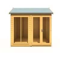 The Mayfield is a stunning summerhouse with a fully glazed front providing lots of natural light, the glass is toughened for your safety. There are useful double doors giving easy access and these are also lockable. This lovely garden room is constructed from high grade 12 mm pine shiplap boards over sturdy 44 mm x 44mm framing. The floor and roof are 12 mm T&G with mineral roof felt provided to complete the roof exterior. The windows and doors are of joinery-made quality and of a storm-resistan...