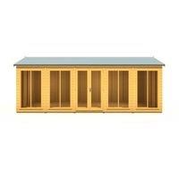 The Mayfield is a stunning summerhouse with a fully glazed front providing lots of natural light, the glass is toughened for your safety. There are useful double doors giving easy access and these are also lockable. This lovely garden room is constructed from high grade 12 mm pine shiplap boards over sturdy 44 mm x 44mm framing. The floor and roof are 12 mm T&G with mineral roof felt provided to complete the roof exterior. The windows and doors are of joinery-made quality and of a storm-resistan...