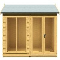 The Mayfield is a stunning summerhouse with a fully glazed front providing lots of natural light, the glass is toughened for your safety. There are useful double doors giving easy access and these are also lockable. This lovely garden room is constructed from high-grade 12 mm pine shiplap boards over sturdy 44 mm x 44mm framing. The floor and roof are 12 mm T&G with mineral roof felt provided to complete the roof exterior. The windows and doors are of joinery-made quality and of a storm-resistan...