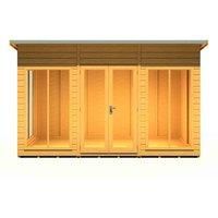 The stylish Lela Summerhouse is a valuable addition to your outdoor living - this modern garden room is perfect for summer dining and relaxing. With an eaves height of around 7 ft high, the Lela provides a very comfortable, spacious interior. The joinery made double doors are fitted with a mortice lock and, like the fixed windows, are glazed with styrene safety glazing. The building is constructed on mighty 44mm square framing and clad with planed shiplap tongue and groove boards made only from the high...