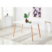 Durable Construction: Features a plastic table top with a subtle satin sheen and solid wooden legs for impeccable stability. Elegant Design: A simple yet luxurious dining table perfect for any decor. Scratch Protection: Equipped with floor protectors to keep your flooring pristine. Easy Maintenance: Enjoy hassle-free cleaning with its wipe-clean laminated surface.
