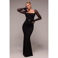 ​A true showstopper for unforgettable evenings, the Goddiva Dobby Mesh Feather Sleeve Evening Maxi Dress in black embodies pure sophistication with a seductive edge. Designed with a flattering square neckline and bodycon fit, the silhouette sculpts and enhances while exuding effortless glamour. Long sheer mesh sleeves are adorned with a delicate polka dot pattern, finished with dramatic feather trims that bring a playful yet luxurious twist. A sleek satin waistband cinches the figure, flowing into a sultry mermaid hem for that red carpet worthy finish. The timeless black hue makes it a versatile choice for black tie events, glamorous date nights or nights out with an ultra chic dress code. With its expensive look and accessible price point, this limited edition piece promises an alluring presence every time. A dress to wear once and rewear for multiple occasions, redefining modern evening wear with an unapologetically feminine touch.​ - Manufacturers part number: Goddiva_