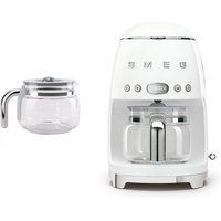 Filter coffee on demand. The Smeg DCF02 drip coffee machine allows you to prepare a deliciously aromatic, richly-flavoured coffee with the option of selecting the aroma intensity you prefer, to satisfy both the most delicate palates and those in search of more intense flavours. This machine combines high levels of performance with a unique design, making it an object to show off. Design and technology. The filter coffee machine is equipped with an aroma intensity selector (from intense to delicate) with a Digital LED display and Clock / Timer and the Auto Start function to set the automatic start time. Up to 10 cups of coffee can be made in the glass carafe, ideal when entertaining family and friends. There is also a 4 cups function perfect for when a smaller quantity of coffee is needed. Settings - Press to adjust the Coffee machine to your taste & requirements - Power/Start coffee cycle - Aroma intensity selector - Select the number of cups required - Auto-start mode - Clock setting ... - Manufacturers part number: Smeg_5060397089489