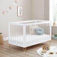 Babymore Kimi XL Acrylic Cot Bed White - 2 Acrylic Style Toddler Rails, Baby Cot Bed With Teething Rail, Convertible to Toddler Bed & Day Bed, 3 Adjustable Mattress Base Positions | Up to 5 Years
