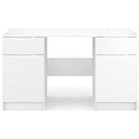 One Call Bilbao Ready Assembled 2 Door, 2 Drawer High Gloss Desk in White H 75 x W 130 x D 43 cm Specially designed for the most modern of studies, this ready assembled desk is part of One Call's Bilbao collection. Its super shiny high gloss comes in a refreshing white hue that will match a wide variety of colour schemes, and the handle-free look ensures the reflective finish always takes centre stage. Providing plenty of handy storage space for files, folders and more, its two cupboards each contain a...
