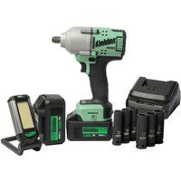 Machine Mart Exclusive Kit! With 850Nm breakaway torque, this powerful Impact Wrench can effectively remove stubborn fastenings. It features 3 torque settings and variable speed trigger, providing the control needed when tightening wheel nuts and working on lighter duty tasks. Compact and manoeuvrable, with a short tool body of 155mm, enabling access to tighter spaces. Powered by a digital brushless motor, which optimises run-time and performance. It is lso equipped with an LED light and ergonomic soft grip handle. Supplied with 2 x 5.0Ah Li-Ion Batteries Charger Work Light Impact Sockets (13, 14, 15, 17, 19 & 21mm) Carry Case - Manufacturers part number: Kielder_