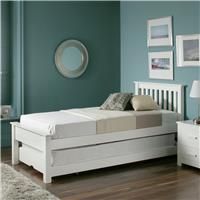 We are really excited by the launch of the new New Atlantis white Guest bed. Perfect for guests rooms and children's bedrooms we are sure that the Atlantis will become one of our best selling models. Finished in a contemporary white finish and manufactured from high quality pine the Atlantis guest bed is a highly practical and versatile bed frame. For ease of use the under bed simply rolls under the main bed on easy glide castors. When in use the underbed pulls out and raises up on spring assisted legs...