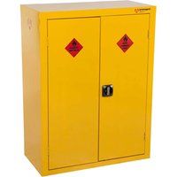 Hazardous floor cupboard designed to be used internally for the safe storage of flammables and chemicals. Liquid-tight sump to contain spillages. All-Steel Construction 2 Keys Supplied 30 Minute Fire-Resistant Flush Handles with 2-Point Locking & Reinforced Doors Warning Signs - Manufacturers part number: HFC5