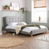 Create a timeless centrepiece with this retro inspired Stockholm bed frame. Upholstered in a wool like fabric the Stockholm features curved and buttoned headboard giving it a versatile look to suit any bedroom setting. This frame has a sprung slatted base with natural bounce, adjusting to where pressure is most exerted to provide greater comfort. The width of the headboard is 146cm . Create a timeless centrepiece with this retro inspired stockholm bed frame. Part of the Stockholm collection. Fabric fram... - Manufacturers part numbers: STOB4GRY|Birlea_5060460023013