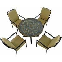 MONTEREY Dining Table - The earthy tones of this large table are from natural stone. Each tile is slightly riven to the touch as is the grouting in between the tiles. The strong black legs compliment the dark natural stock colours. Able comfortably seat 4 people for dinner, designed for use either inside or outdoors. The top and table edge are both manufactured from hand laid natural stone tiles with grout in between. The table has steel legs with adjustable feet for uneven surfaces. Product requires mi...