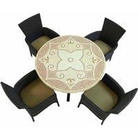 PROVENCE Dining Table - Truly a wonder to behold, the fine mosaic tiles are made from travertine marble are hand laid. The pedestal leg allows for a parasol and finished in black to add to the elegance. This generous 1.1m diameter table will look stunning on your patio or in a conservatory. Every tile is cut and placed by hand and as natural stone varies no two tables will be alike and your table will be genuinely unique. Able comfortably seat 4 people for dinner, designed for use either inside or outdo...