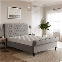 * Luxurious hand-sewn fabric finish with wooden legs* Spring slatted base- for added support and comfort* Opulent and glamourous Chestfield headboard and footboard with button detailingInspired by the iconic chesterfield style, this luxurious bed frame features elegant scrolled head and footboards, complete with deep buttoning and a hand sewn finish.[Click here to view assembly instructions for the Double](https://www.dunelm.com/infodocs/assembly-instructions/ClassicChesterfieldDoubleBed.pdf)[Click here... - Manufacturers part number: 30653419