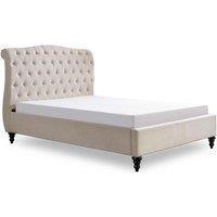 A truely classic design, with a buttoned headboard designed to make any bedroom look stylish and elegant. Flat Slats fitted via plastic caps. 6cm gap between slats Features: Button headboard Low footend Flat slats fitted via plastic caps 6cm slat gap Dark brown corner feet Flat pack product Box 2 - 16kg, box 3 - 8kg Box 2 - 203 x 27 x 13, box 3 - 96 x 16 x 14 Specifications: Dimensions: H:123.0 x W:165.0 x D:225.0 cm Colour: Cream Guarantee:1 Year Material: 100% Polyester Model Number: R28