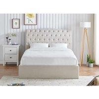 This storage option still offers a truely classic design, with a buttoned headboard to make any bedroom look, elegant and stylish design . Flat Slats fitted via plastic caps and supplied with a KD metal base. 6cm gap between slats Features: Button headboard Base lifts up from the footend Flat slats fitted via plastic caps 6cm slat gap Flat pack product Box 2 - 17kg, box 3 - 10kg Box 2 - 194 x 34 x 16, box 3 - 191 x 21 x 7 Specifications: Dimensions: H:123.0 x W:105.0 x D:218.0 cm Colour: Cream Guarantee...