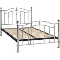 Exquisite classic bed in a striking black chrome finish with a sprung slatted base to give extra comfort. Dual finials available Features: Black chrome finish Headboard & Footboard Sprung Slatted Base to give extra comfort Base is spray painted black Option of Black Chrome or Crystal finials upon assembly Available in Chrome Flat pack product Box 2 - 21kg Box 2 - 202 x 23 x13 Specifications: Dimensions: H:122.0 x W:146.0 x D:202.0 cm Colour: Black Guarantee:1 Year Material: Tubular Steel Model Number: C28