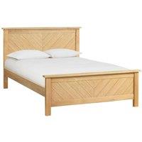 With its flowing chevron design this elegant bedframe is sourced using certfied American Oak Side panels are wood veneer with a wooden slatted base with a 6cm slat gap Features: Chevron design headboard & footboard Headboard & footboard made from American Oak Side panels made from oak veneer Wooden slatted base 6cm slat gap Flat pack product Box 2 34kg Box 2 208 x 33 x 15 Specifications: Dimensions H 103 0 x W 164 0 x D 217 0 cm Colour Brown Guarantee 1 Year Material American Oak & Wood Veneer Model Num...